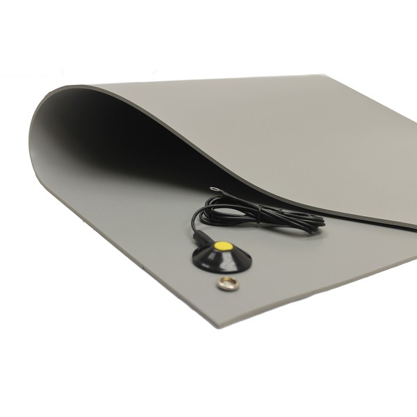 Three Layer Dissipative Vinyl Anti-Static ESD Mat -24" X 36" (2'x 3') - 0.125" Thick- with Ground Cable-Gray