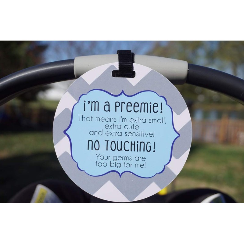 THREE LITTLE TOTS – Blue Boy Preemie No Touching Baby Car Seat Sign or Stroller Tag – Preemie Gift – CPSIA Safety Tested