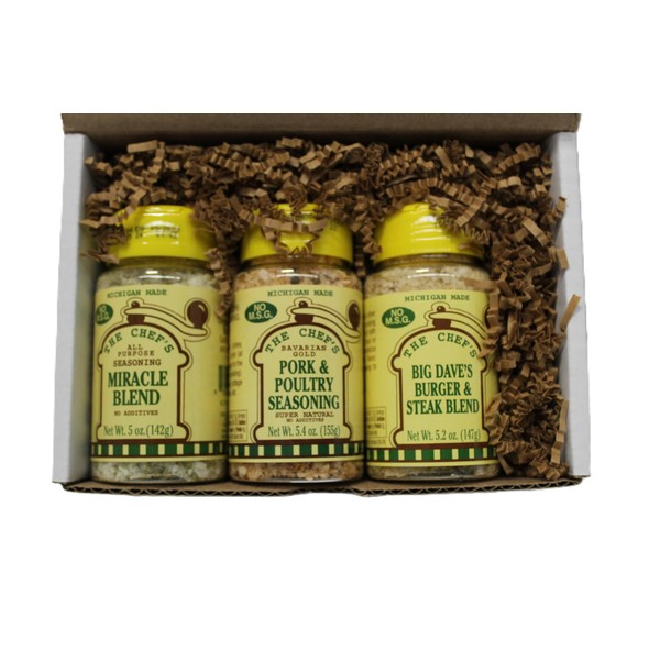 The Three pack includes: Miracle Blend, Pork and Poultry and Char Broil-It. These three spices have always been a Mill House favorite and makes the perfect useful inexpensive gift.