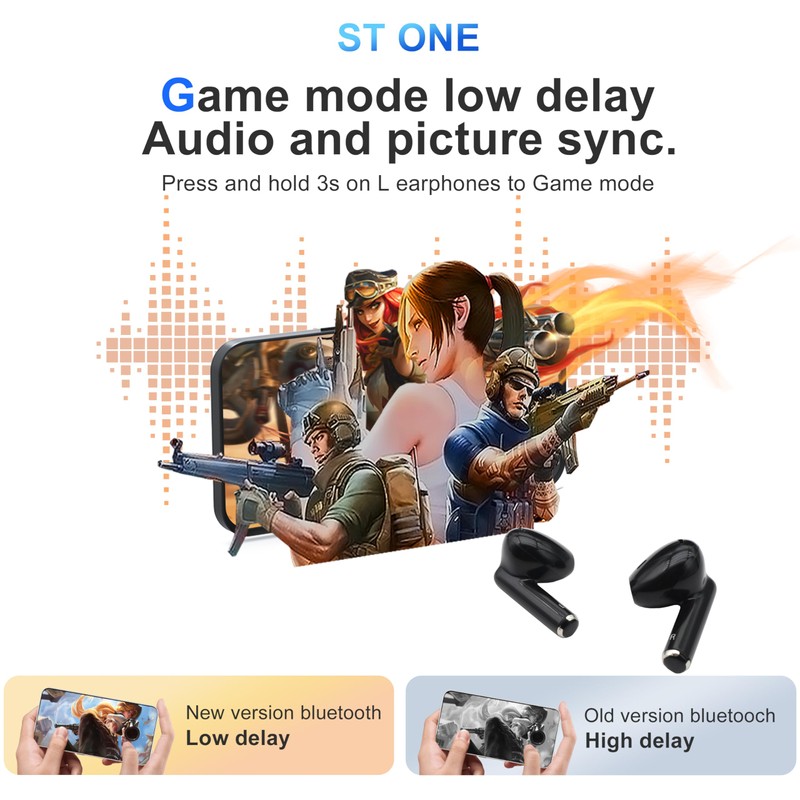 THREE PEACHES wireless bluetooth earbuds feature 13mm drivers that produce stereo, awaken your ears with sound quality, astonishing listening experience