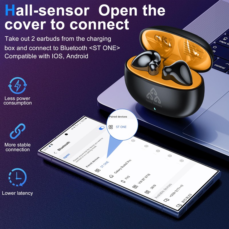 - 【Hall-sensor, Open the cover to connect】 Bluetooth 5.3 technology provides stable, low-latency wireless connection and brings high-quality sound. When you open the Bluetooth earbuds, the earphone automatically connects to the Bluetooth of your phone, saving your waiting time.