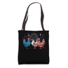 Three Red Blue White Cute Chickens 4th Of July Farmer Tote Bag