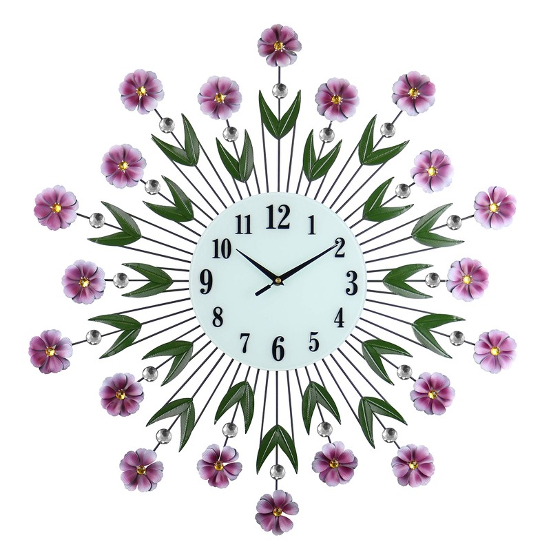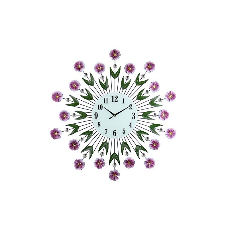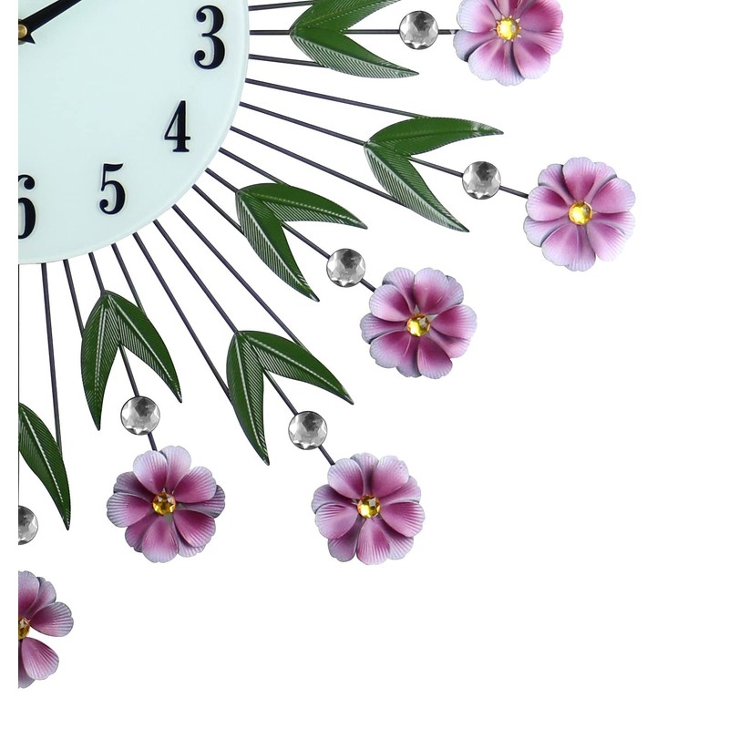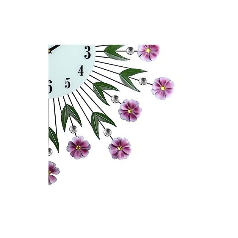 Three Star Large Purple Flower Wall Clock with Crystal Accents
