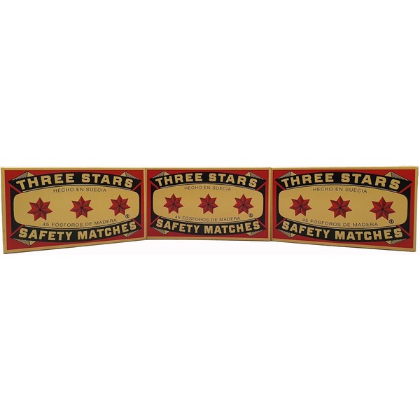 Three Stars Safety Matches, 3 Pack, Strike-On-Box