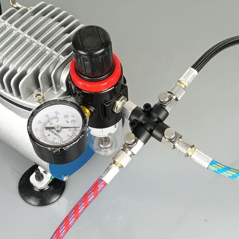 - ➤THREE PIPE CONNECTIONS: One air pump can connect three pipes at the same time, which can solve the problem that one air pump can only connect one pipe, which is convenient for friends who use multiple spray guns at the same time.