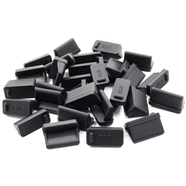 ThreeBulls 30 Pcs Silicone USB Cap Port Cover Anti Dust Protector for Female End Black