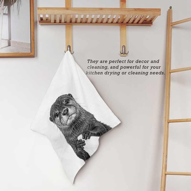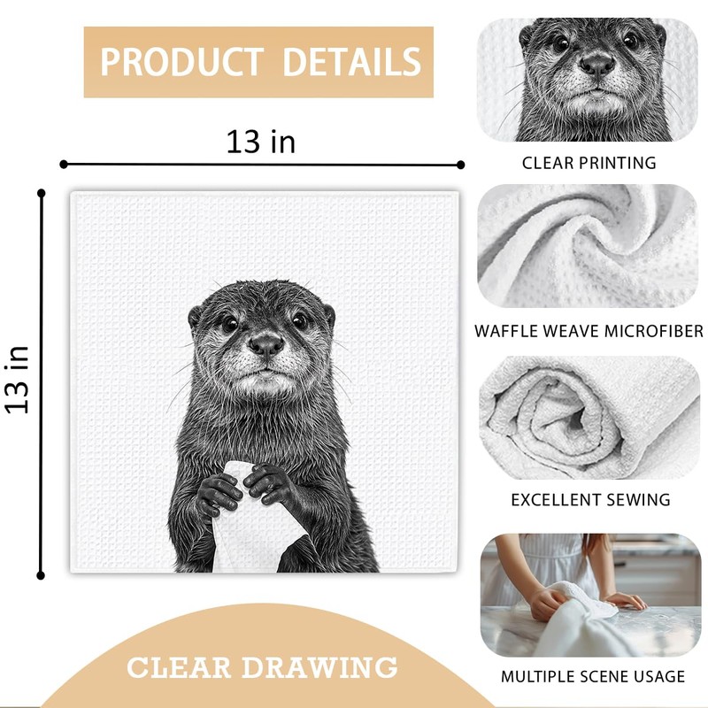Threegoat 13x13 Cute Otter Kitchen Towels 1 Set, Funny Otter Gifts for Women, Otter Decor Hand Towels for Bathroom, Cute Animal, Women, Pet Owners Housewarming-03