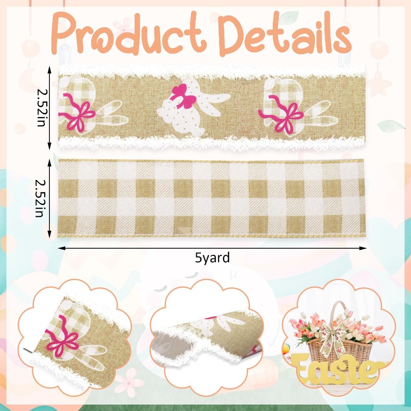 - Size and quantity: you will get 2 rolls easter ribbons (1 piece gray white buffalo plaid ribbon,1 piece bunny velvet ribbon), each easter decorative ribbon measures approx. 2.5 inches in width approx. 5 yards in length, so you will get a total 10 yards wired edge ribbons, long enough to satisfy your decorative needs and gift wrapping purposes.