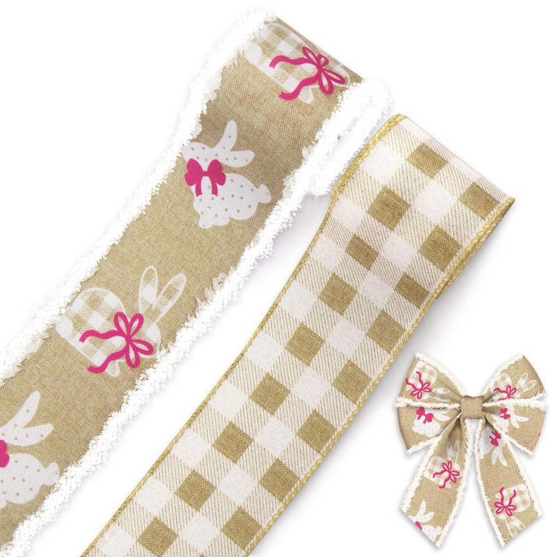 - Size and quantity: you will get 2 rolls easter ribbons (1 piece gray white buffalo plaid ribbon,1 piece bunny velvet ribbon), each easter decorative ribbon measures approx. 2.5 inches in width approx. 5 yards in length, so you will get a total 10 yards wired edge ribbons, long enough to satisfy your decorative needs and gift wrapping purposes.