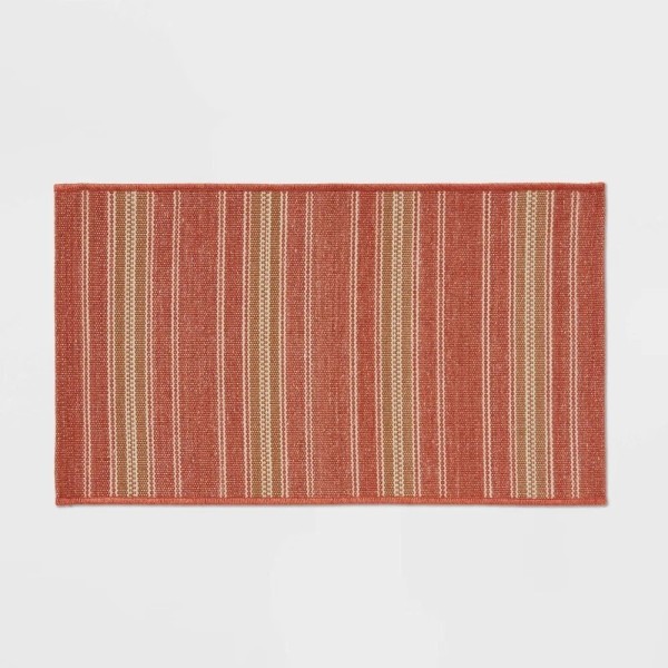 Threshold 20" x 34" Woven Kitchen Rug Dark Orange Stripe #C691