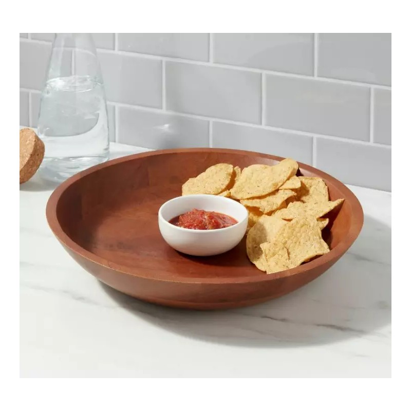 Threshold Ceramic Signature Chip and Dip Serving Bowl Wooden Vegetable Tray-Threshold