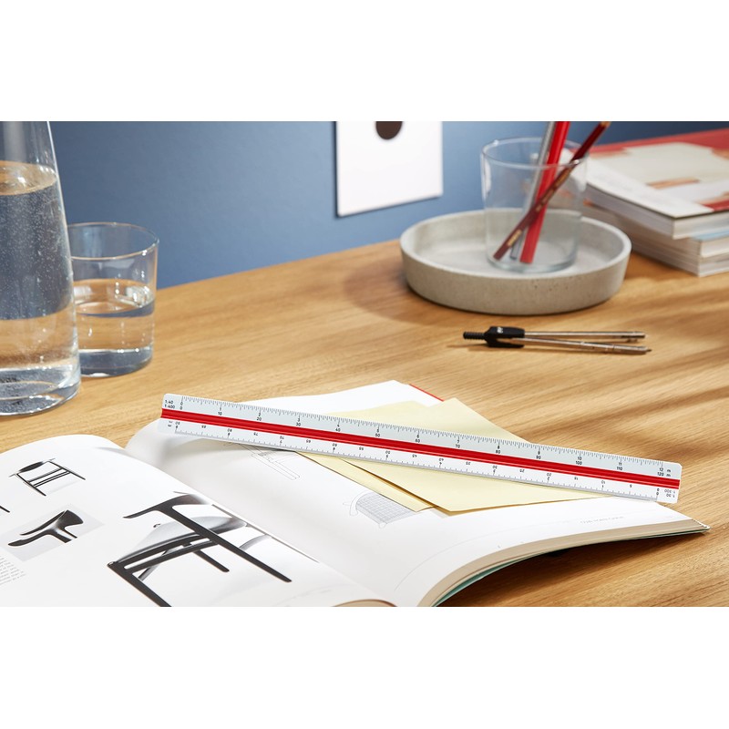 - Off white dimensionally stable plastic ruler. Precision divisions are numbered both ways. Dimension markings are in metric for easier working. Two coloured flutings.