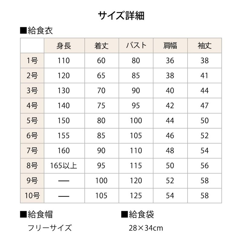 - 【サイズ】1号~10号 帽子・袖口ゴム入り/ゴム取替口付き/両脇ポケット付き