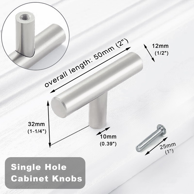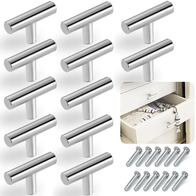 THSIREE 12PCS Cabinet Knobs, Cabinet Pulls Drawer Knobs, T Knobs Single Hole Cabinet Hardware with Screws, for Kitchen Bedroom Furniture, Silver