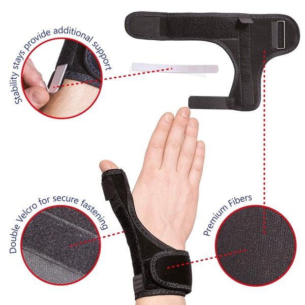 Thumb Brace Stabilising Splint for Thumb Injuries and Tendonitis Universal Size/Right or Left Hand, Black, One Size