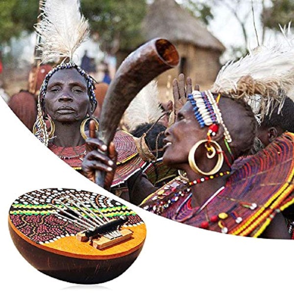 Thumb Piano 7 Keys Adjustable Coconut Shell Painted Thumb Piano Kids' Finger Percussion Keyboard Musical Instrument