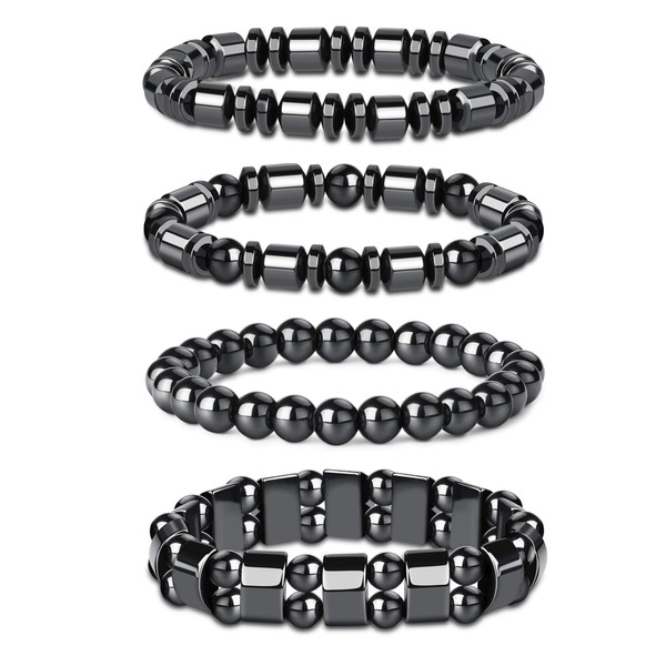 HEMATITE BRACELET: This hematite magnetic healing bracelet set includes 4pcs different styles and designs, distinct shaped black gallstones match with tiger eye stones, colorful-tone electroplated beads or alloy material accessories, make this bracelet more fashionable and chic for men women boys and girls to wear.