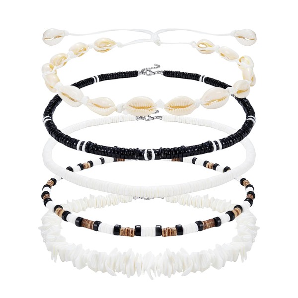 • 💃[BEACH NECKLACE SET]: One order includes 5pcs shell necklace: irregular white puka shell necklace; smooth white puka shell necklace; black puka shell necklace and colour mixture puka shell necklace, normal sea shell necklace, affordable and multiple choice for you.