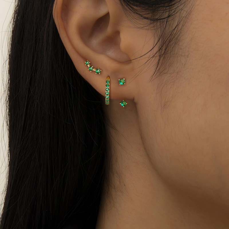 Thunaraz Sterling Silver Stud Hoop Earrings Set for Women Teen 3Pairs 925 Sterling Silver Cartilage Earrings Stud Earring Huggie Earrings Set Gold-Green CZ