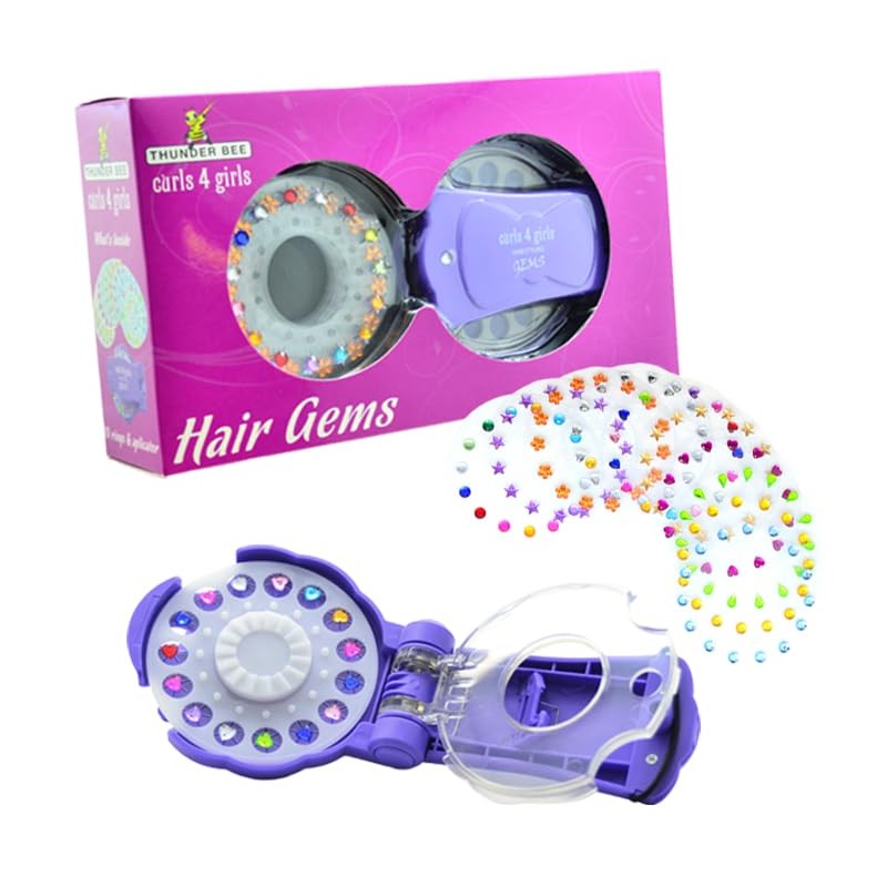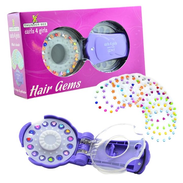 Thunder Bee Hair Gems Applicator Set with Colourful Gems, Purple