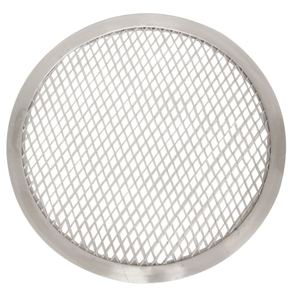 18 inch seamless rim pizza screen made of heavy duty aluminum for the item to be sturdy for long time use. The seamless rim aluminum pizza screen produces an evenly baked crust by allowing air to circulate beneath the crust while baking.