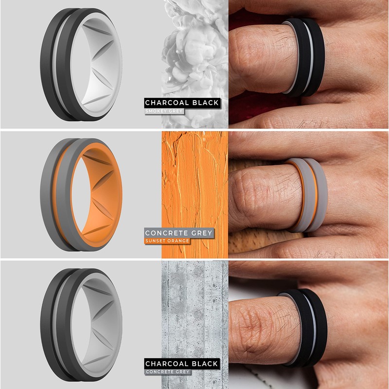 ThunderFit Anillos de boda de silicona para hombre, línea media biselada, 2 capas, 8,2 mm de ancho, 2,5 mm de grosor