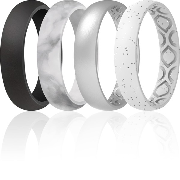 ThunderFit Silicone Wedding Bands for Women, 4 Mixed Stackable Rubber Engagem...