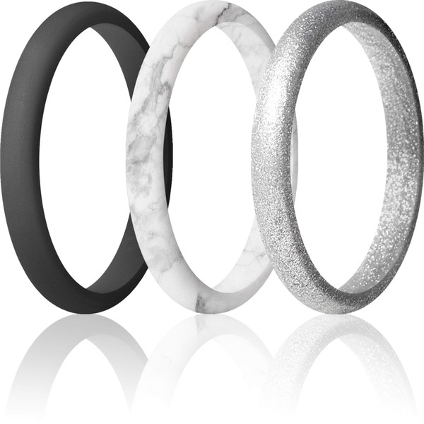 ThunderFit Stackable Silicone Wedding Rings for Women, Thin Rubber Engagement Bands 2.5mm Wide 1.8mm Thick - 1/2/3/4/5/7 Variety Multipack