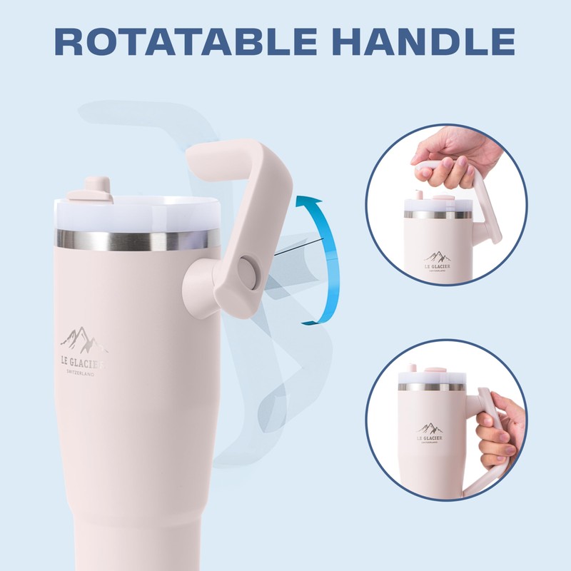 Thurston Tumbler – 40oz Stainless Steel Insulated Travel Cup with Handle & Straw Lid, Double-Wall Vacuum with All-in-One Rotational Handle & Retractable Straw for Hot & Cold Drinks (Light Pink)