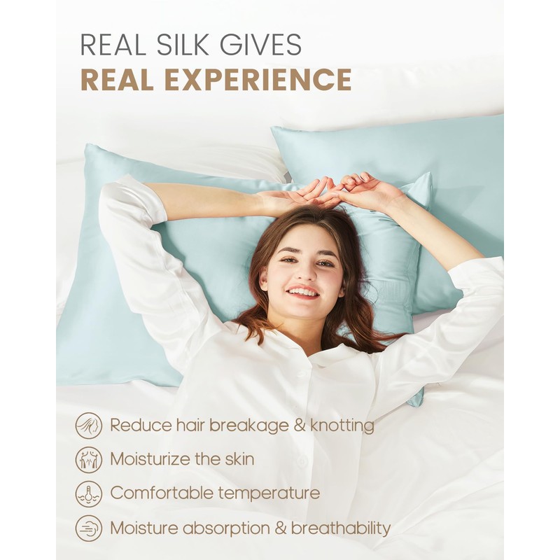 - BENEFITS FOR HAIR, SKIN AND SLEEP: A natural silk pillowcase allows your hair and skin to glide effortlessly along the surface of your pillow. Less friction helps reduce hair breakage and promotes skin smooth. Comfortable and breathable, pure mulberry silk is also a natural temperature regulator, which helps maintaining the correct body temperature. It keeps you feel cool in summer and warm in winter.