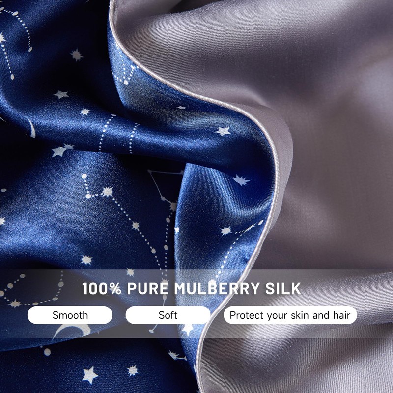 THXSILK Mulberry Silk Pillowcase for Hair and Skin Health, Mulberry Silk Pillowcase with Hidden Zipper, Breathable and Natural, Sleep Pillow Case(Standard 20"x26", Navy Blue Constellation Pattern)