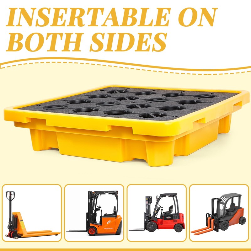 • Wide Applicability: the spill containment tray comes with flat top grating for easy loading and unloading and can work well with various types of forklifts, which is applicable for various industrial parks, warehouses, aquaculture water storage, and other occasions