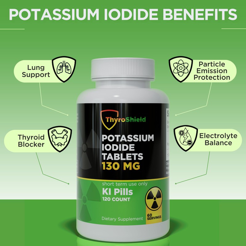 ThyroShield Potassium Iodide Tablets - 130mg Iodine Tablets for Radiation Exposure | USA Made Nuclear Fallout Pills KI Pills YODO Naciente 120 Tablets (2 Pack)