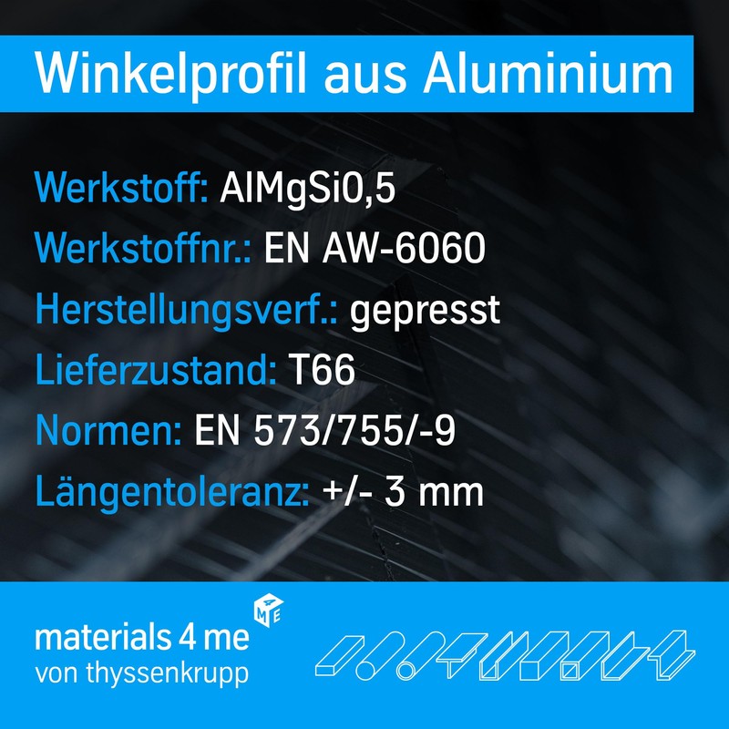 - Proven thyssenkrupp quality - Angle profile made of high-quality aluminium EN AW-6060 with excellent surface quality for decorative applications.