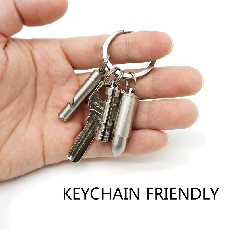 TI-EDC Titanium Mini Pill Fob, Bullet Design Waterproof Keychain Pill Holder, Charm Pendant Pill Reminder, Ultra-Lightweight 0.28oz, Inner Depth - 0.84”