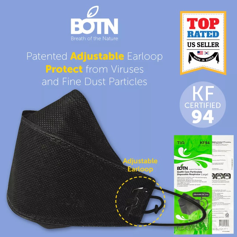 Tia BOTN 10 Pack KF94 BLACK Protective Face Mask Adult Made in Korea KFDA Approved BOTN