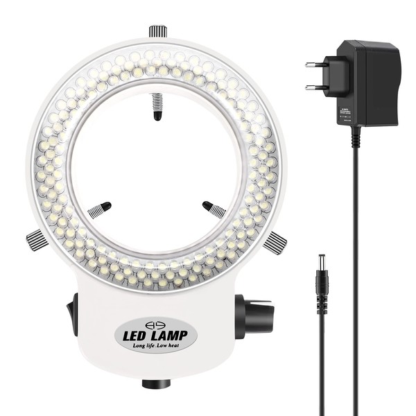 Tiamu Microscope LED Ring Light, Stereo Microscope Camera 144 LED Beads Ring Light, Brightness 0-100% Adjustable Ring Light Industrial Optical Microscope Camera Ring Lamp Light Illuminator