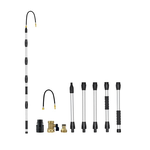 TianfuSpanda Gutter Cleaning Tools, 8FT Adjustable Lenth Gutter Cleaner from the Ground with 5-section Extension Rods,Adjustable Nozzle and Elbow Angle Design,Black