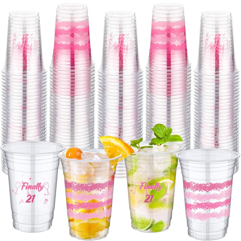 - Practical and Clear: each disposable Finally 21 cup is 16 oz, a proper capacity to hold drinks, cocktails, beer, juice and other beverage, clear design paired with adorable Finally 21 prints make your drinks look more appetizing, great for both party and daily use