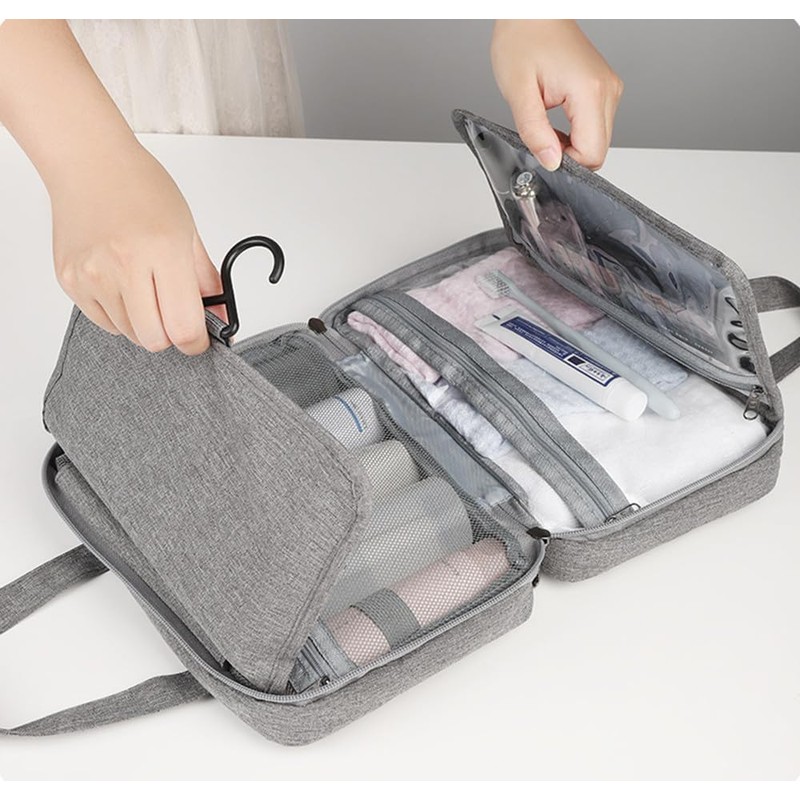 Tianle Hanging Travel Toiletry Bag,Waterproof Folding Cosmetic Bag,Portable Multifunctional Cosmetic Organiser for Men and Women, Grey, Travel Toiletry Bag