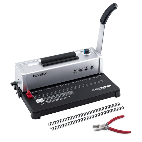 - 【Professional & Customizable Binding】TIANSE Coil binding machine is suitable for Letter Size (42 holes), A4 Size (46 holes), A5 Size (33 holes). Open-throat design allows you to insert large and non-standard page sizes to meet the specifications of your unique project (When you install the binder handle, be sure to install it 90 degrees vertically)
