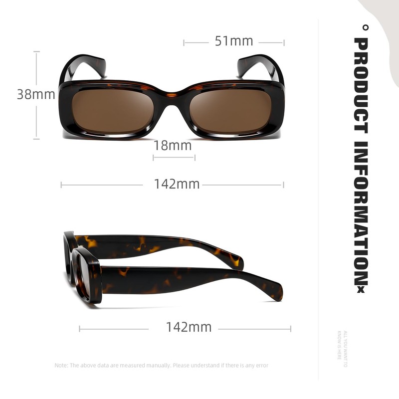 TIANYESY Sunglasses Women Square Men Trendy Show shades Retro fashion vogue UV Protection Thick border depression inside (Leopard print color)