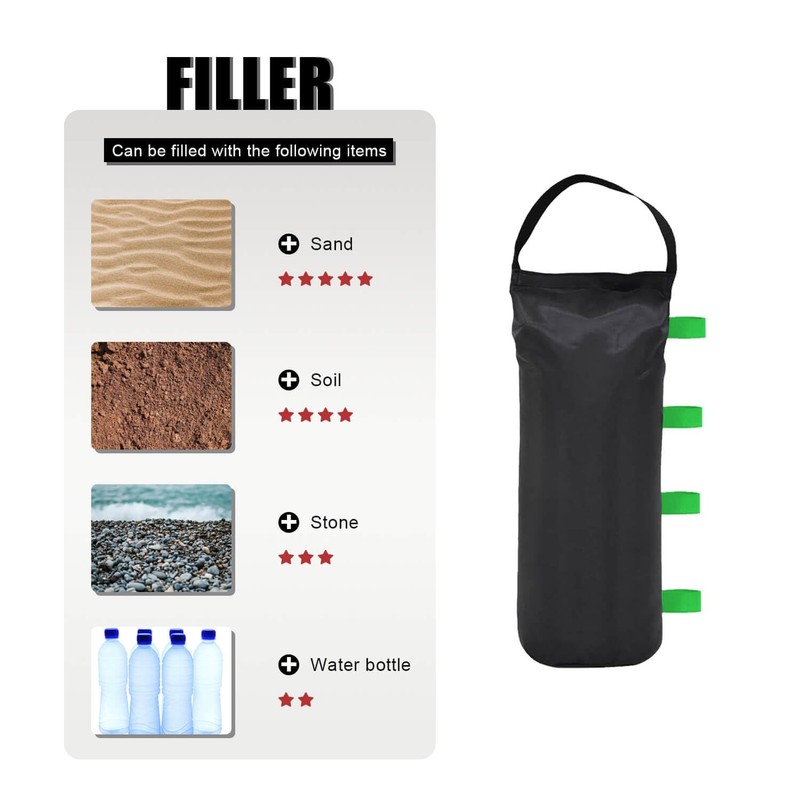 - ⛺Each bag has four sand weight bags,only the bag has no sand.