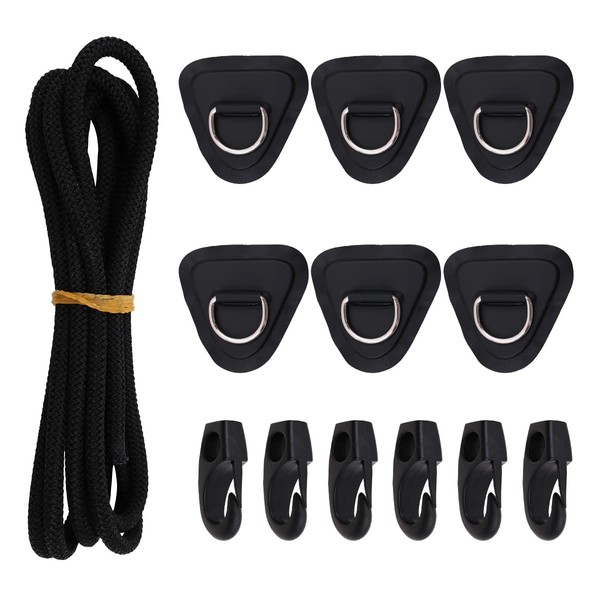 - D-ring patch is easy to use, strong adhesion, you don't have to worry about falling off. Make it easier to tie equipment to a raft or canoe or add grabbing lines to ensure safety. What You Get: You can get 6pcs Triangle PVC D Ring Patches. 98.4inch elastic rope, 6pcs hooks, 1pc handles.
