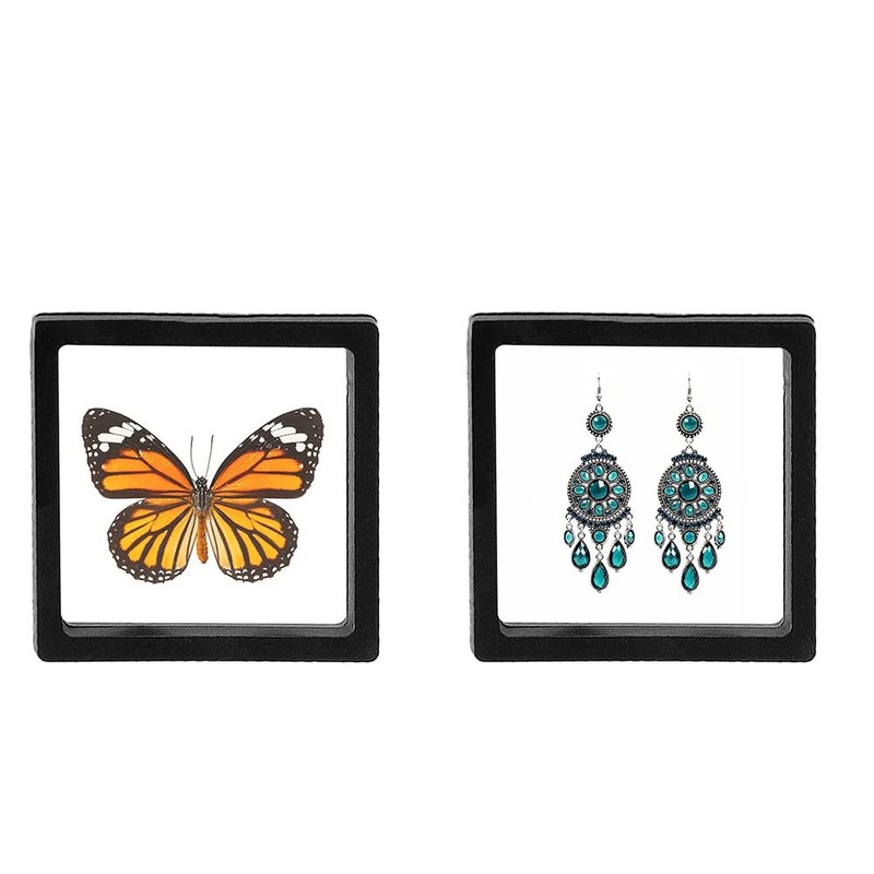 Tiardey Pack of 10 3D Floating Frame Display Holder Stand PE Film Transparent Jewellery Storage Box Tarnish Protection Coin Holder – Black