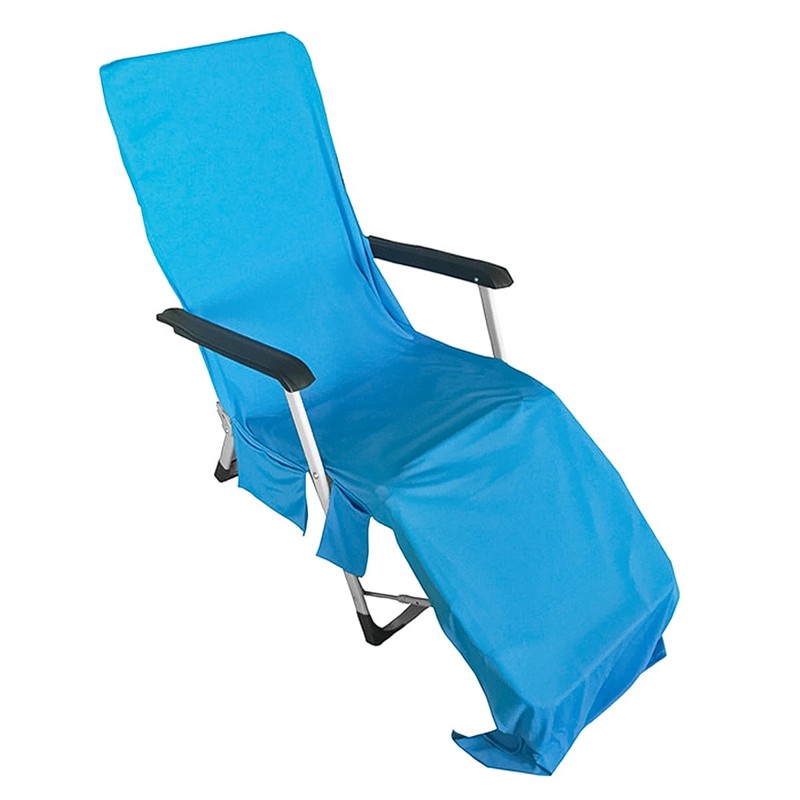 Tiardey Strandstuhlbezug, Handtuch, Sonnenliegen-Handtuch, blaues Strandtuch mit Tasche, Sommerurlaubszubehör für Liege, Pool, schnelltrocknendes Reisehandtuch (210 x 75 cm)