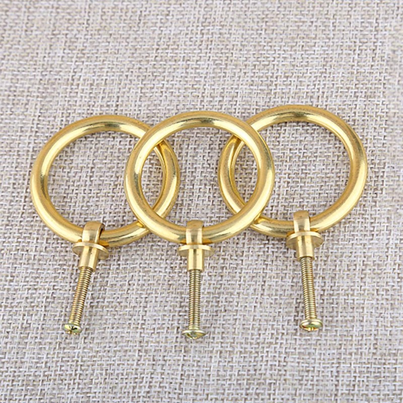 Tiazza 8Pcs Antique Brass Ring Pull Handle Kitchen Cabinets Wardrobe Drawer Furniture Hardware Retro Style Small Pull Ring (Gold)