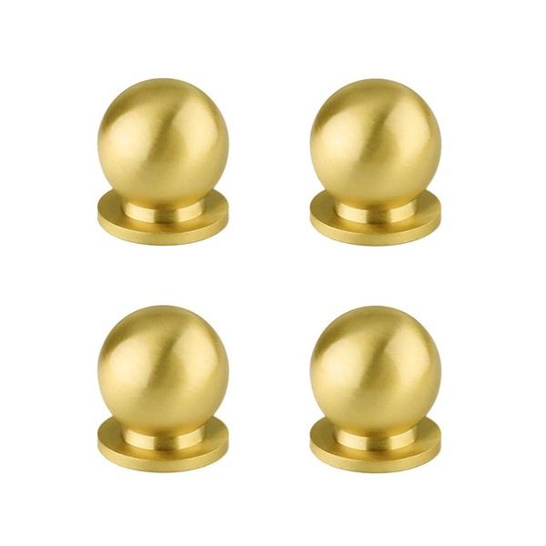 Tiazza Pack of 4 Round Solid Brass Knobs Antique Drawer Small Handle Modern Minimalist Pulls (Gold)
