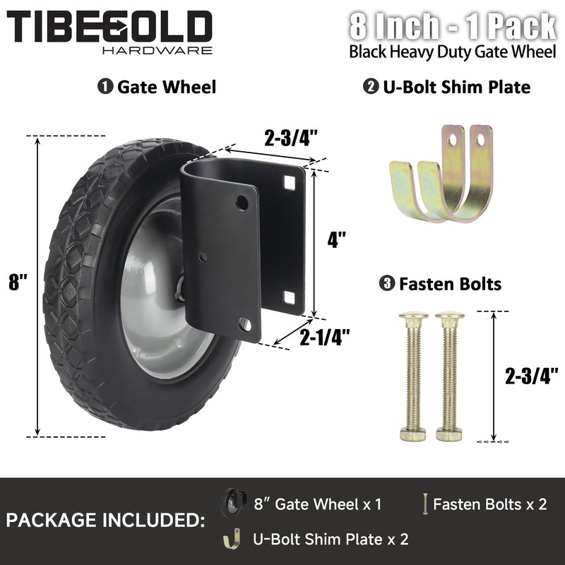 - Durable 8 Inch Gate Wheel: Expertly crafted from hard tire rubber and solid steel, TIBEGOLD gate wheels promise exceptional strength and reliability. Protected by a premium black powder coating and galvanization, they offer superior resistance to corrosion, ensuring enduring durability. Specifically engineered for outdoor environments, these gate casters withstand the test of time and the elements with ease.