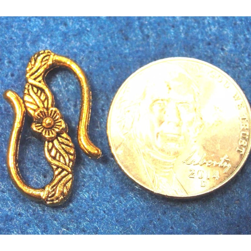 10 PCS. NICE FLOWER ANTIQUE GOLD "S" CLASPS